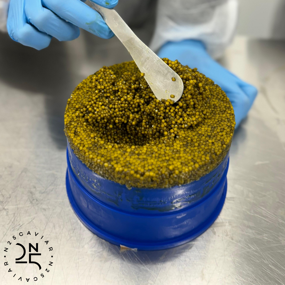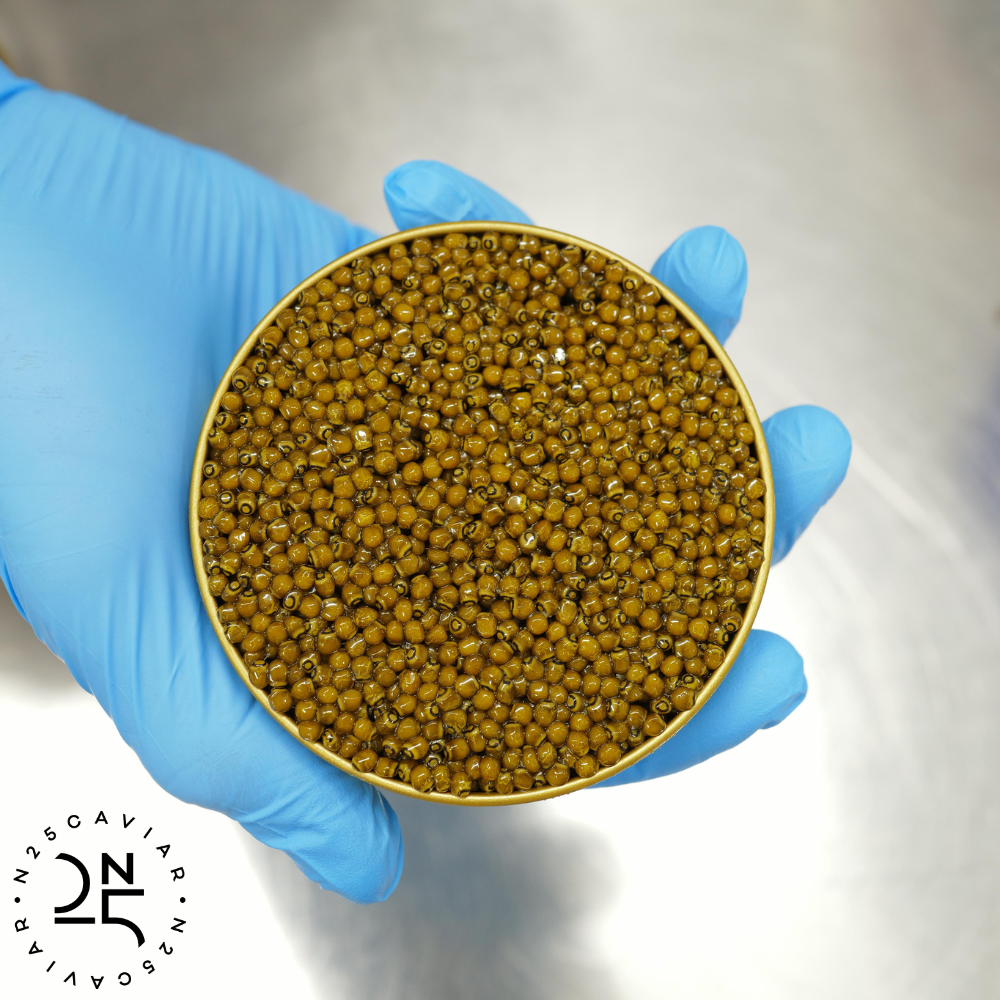熟成する事によって、キャビア自体が持つ旨味が更に増し、よりクリーミーに、そしてナッティーな香りと深い味わいが加わります。全てのN25キャビアは最低でも3ヶ月間熟成されてから出荷されています。